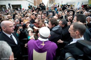 Ahad lalu itu, Paus Fransiskus baru saja selesai memimpin misa di Gereja Santa Anna. Biasanya pastor memang menyalami orang di dalam dan luar gereja setelah misa, tapi baru kali itu seorang paus melakukannya.